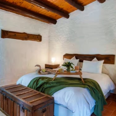Habitaciones acogedoras con vistas al jardín y decoración rústica.
